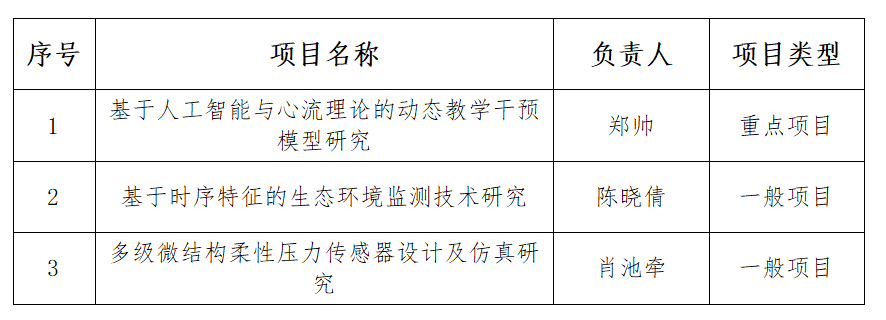 根据福建省教育厅《福建省教育厅关于开展2025年度中青年教师教育科研项目(科技类)申报立项工作的通知》(闽教科〔2025〕15号)要求,我校积极开展组织申报及推荐工作。科研产业处于11月17日组织专家对申报项目进行通讯评审,拟推荐以下3个项目申报2025年度中青年教师教育科研项目(科技类):