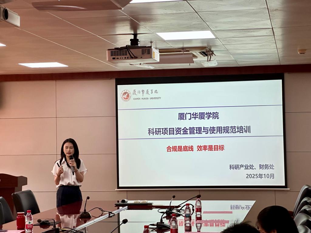 为进一步加强科研项目资金管理,提升经费使用效益,确保科研经费使用合规、安全、高效,2025年10月14日下午,厦门华厦学院在齐礼楼602会议室成功举办《科研项目资金管理与使用规范》培训会议。各教学单位负责人、科研项目负责人、财务助理及相关职能部门人员参加了本次培训。